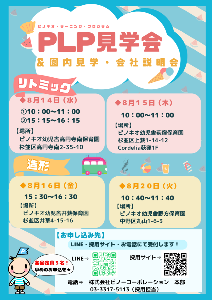 【8/14・15・16・20】PLP見学会&園内見学・会社説明会